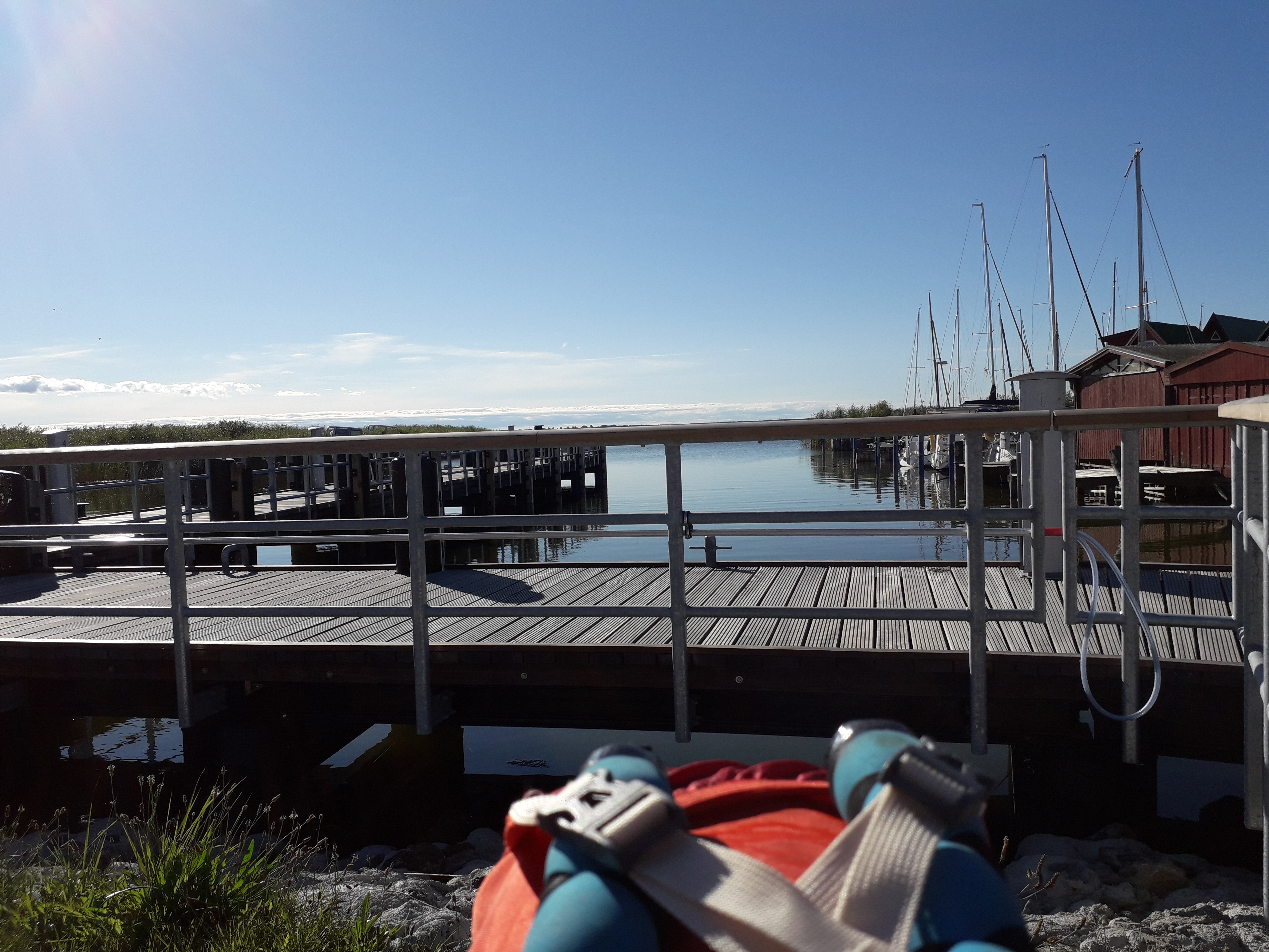 …bevor die zweite Hälfte der Tour beginnt. Ich bin 34km nach Zingst “auf dem Darst” gefahren. Eine kurze, nahe des Hafens von Ahrenshoop sehr schöne, insgesamt weniger schöne Strecke entlang der Bundesstraße auf die Halbinsel. Den Rest des Tages habe ich am Hafen und Strand von Zingst verbracht. Vorbereitung und Planung der nächsten Etappen, insgesamt wahrscheinlich weitere 200km.