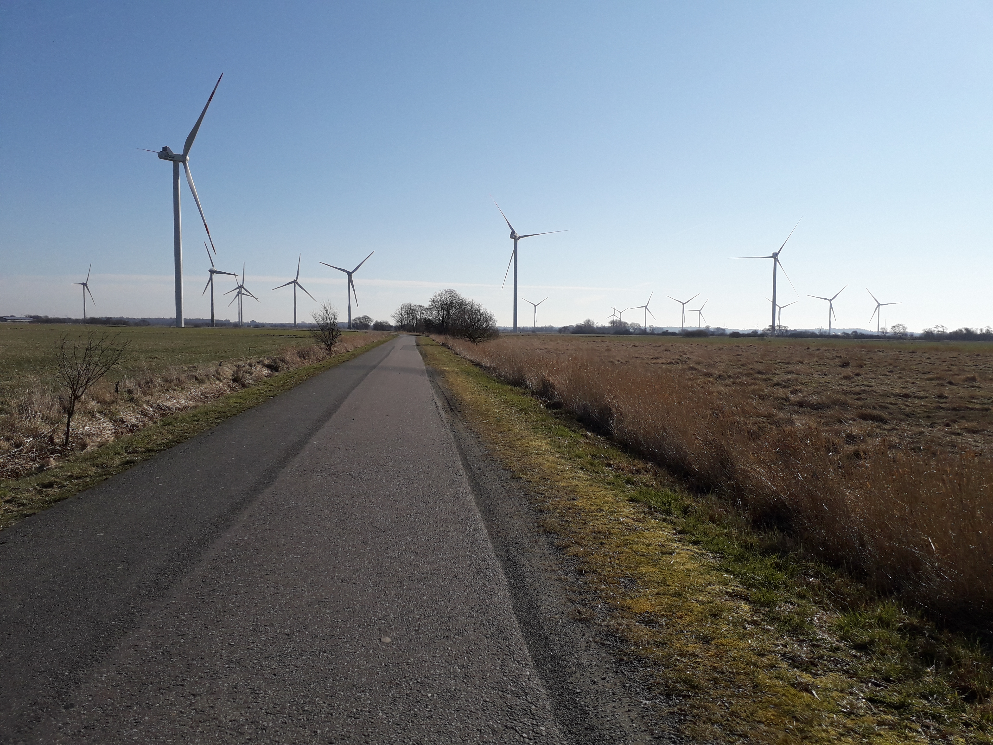 Exactly, the wind turbines are pointing perfectly in the direction I am heading. Therefore this particular form of wind is called a headwind, known by every cyclist. Not as dangerous as a full storm or hurricane, neither as tricky to compensate for as a gusting side wind, but man a headwind can demolish your moral.