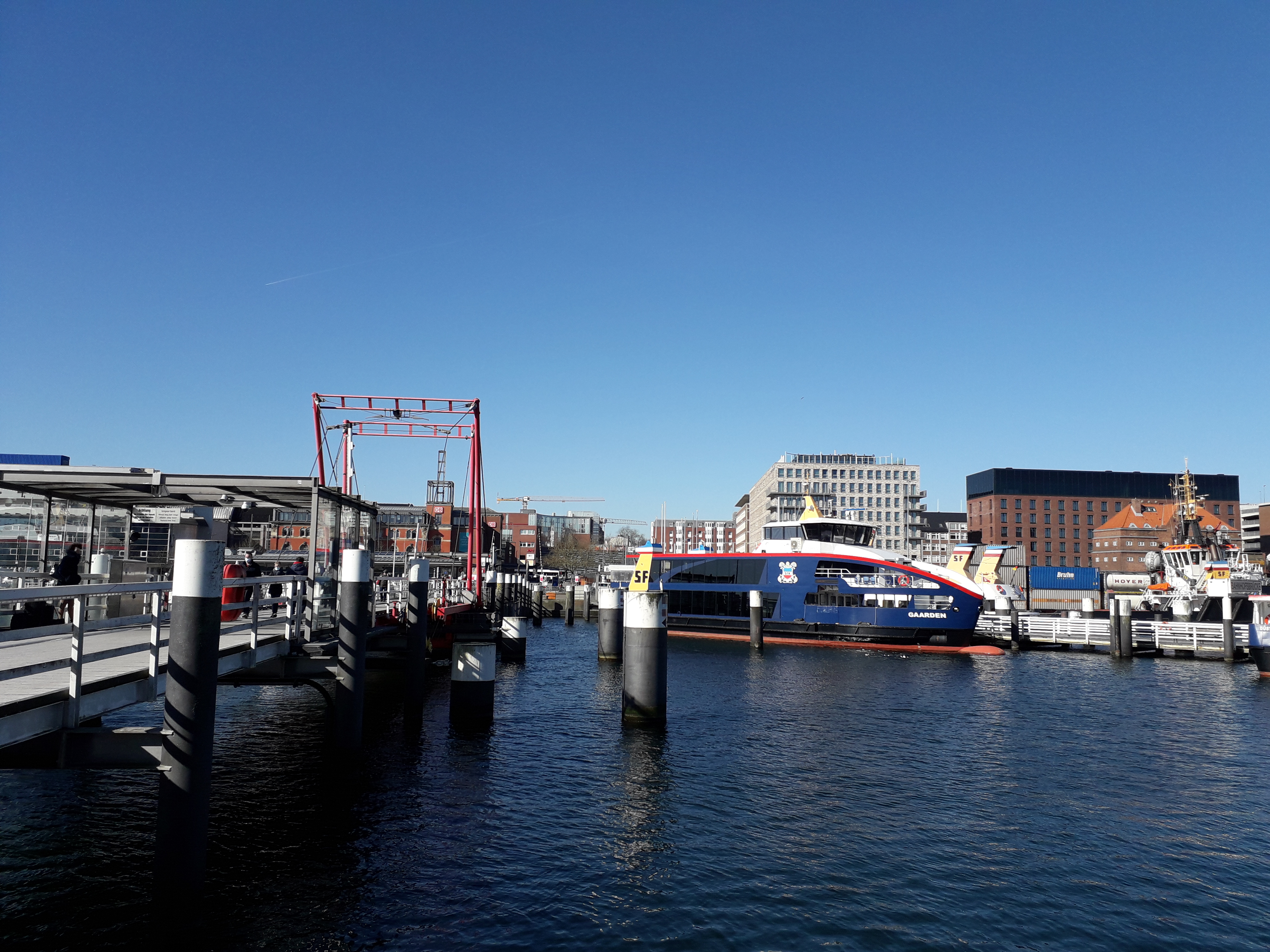 And so I fought my way along major roads and into the wind - today more at 30km/h - towards Kiel. Nice surprise: crossing the NOK on one of the massive bridges, as even large vessels have to fit through.